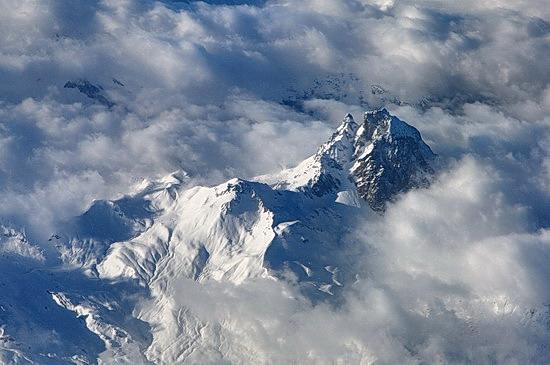 Während des Fluges nach Malaga präsentieren die Pyrenäen ihre schnee- bedeckten Gipfel über den Wolken.