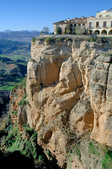 Für meinen Aufenthalt hatte ich den Parador gewählt, der im ehemaligen Rathaus von Ronda exponiert auf der Spitze der Klippe liegt. Der atembe-raubende Ausblick in die weite Landschaft und auf das Wahrzeichen von