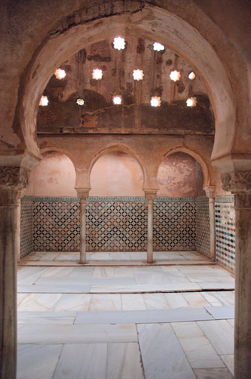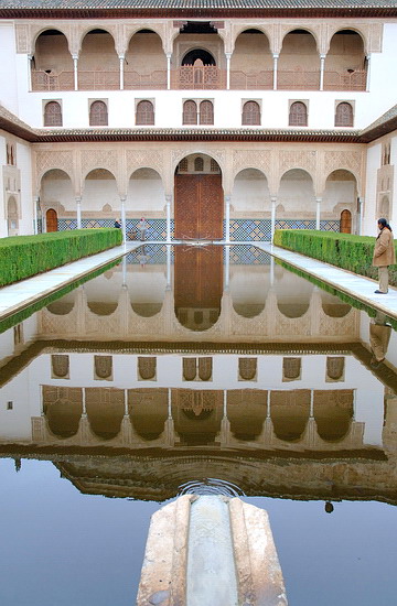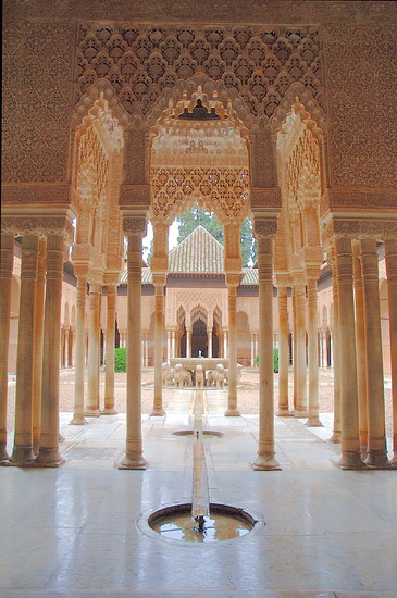 Von außen erscheint die Alhambra wie ein Zweckbau, im Innern aber be-zeugen Säulen, Bögen und Ornamentik, Gärten und Wasserspiele den Höhe-punkt arabisch-andalusischer Baukunst.
